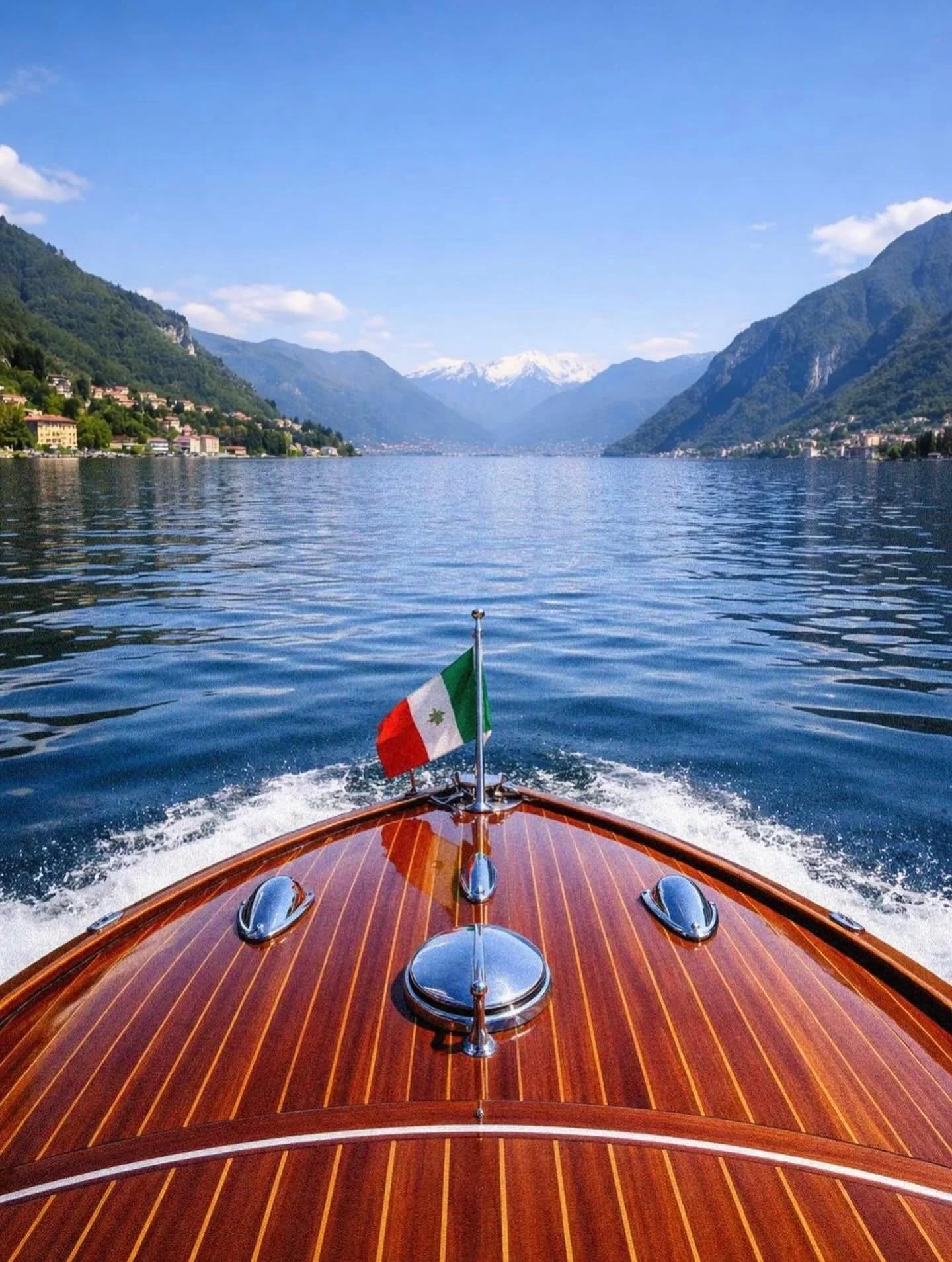 An iconic Venetian-style wooden boat, refined and spacious, perfect for a stylish lake experience