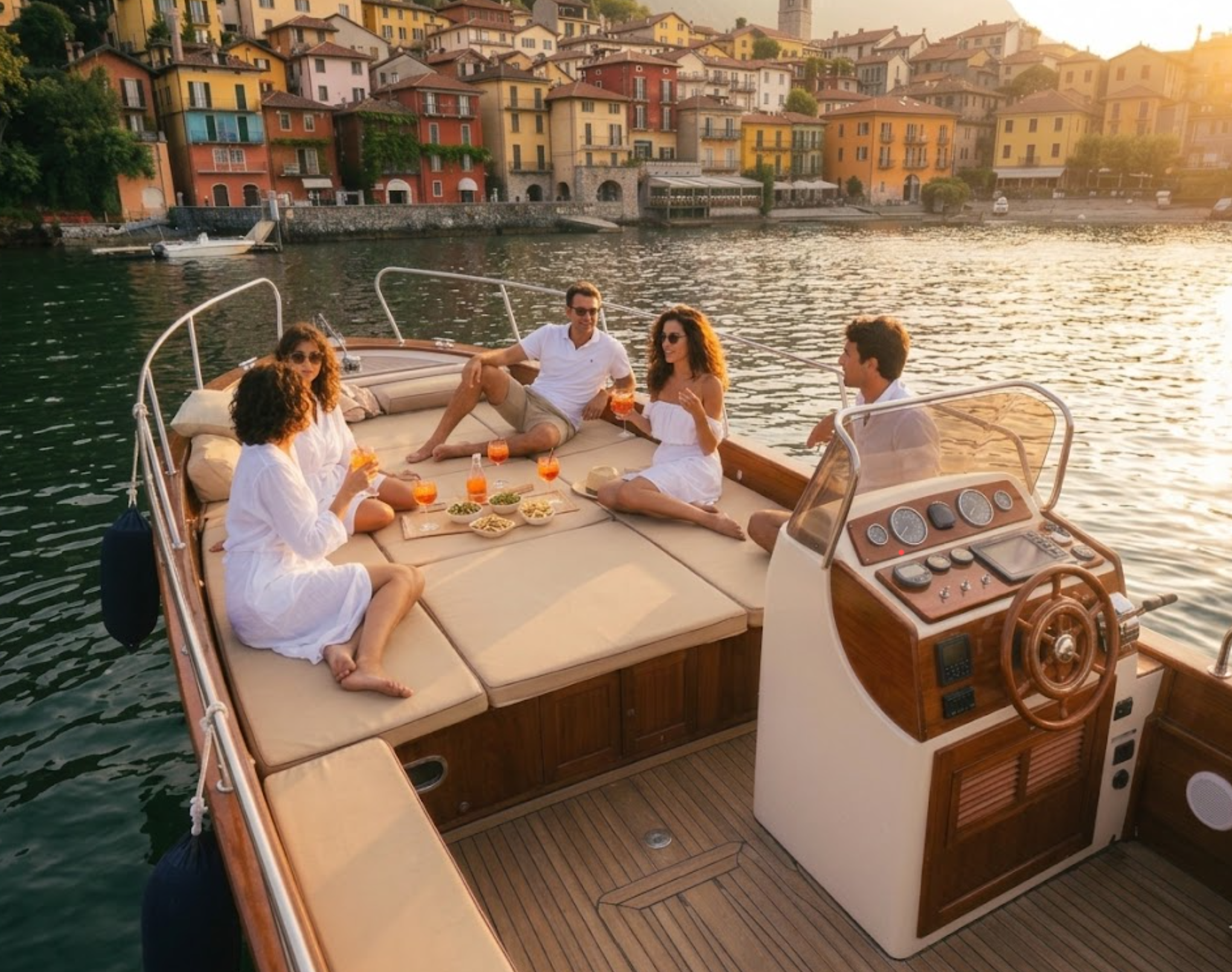 "Your private boat for the entire day. From sunrise to sunset, let the lake reveal all its secrets. We can stop for a gourmet lunch at a lakeside restaurant and cruise all the way to Como."